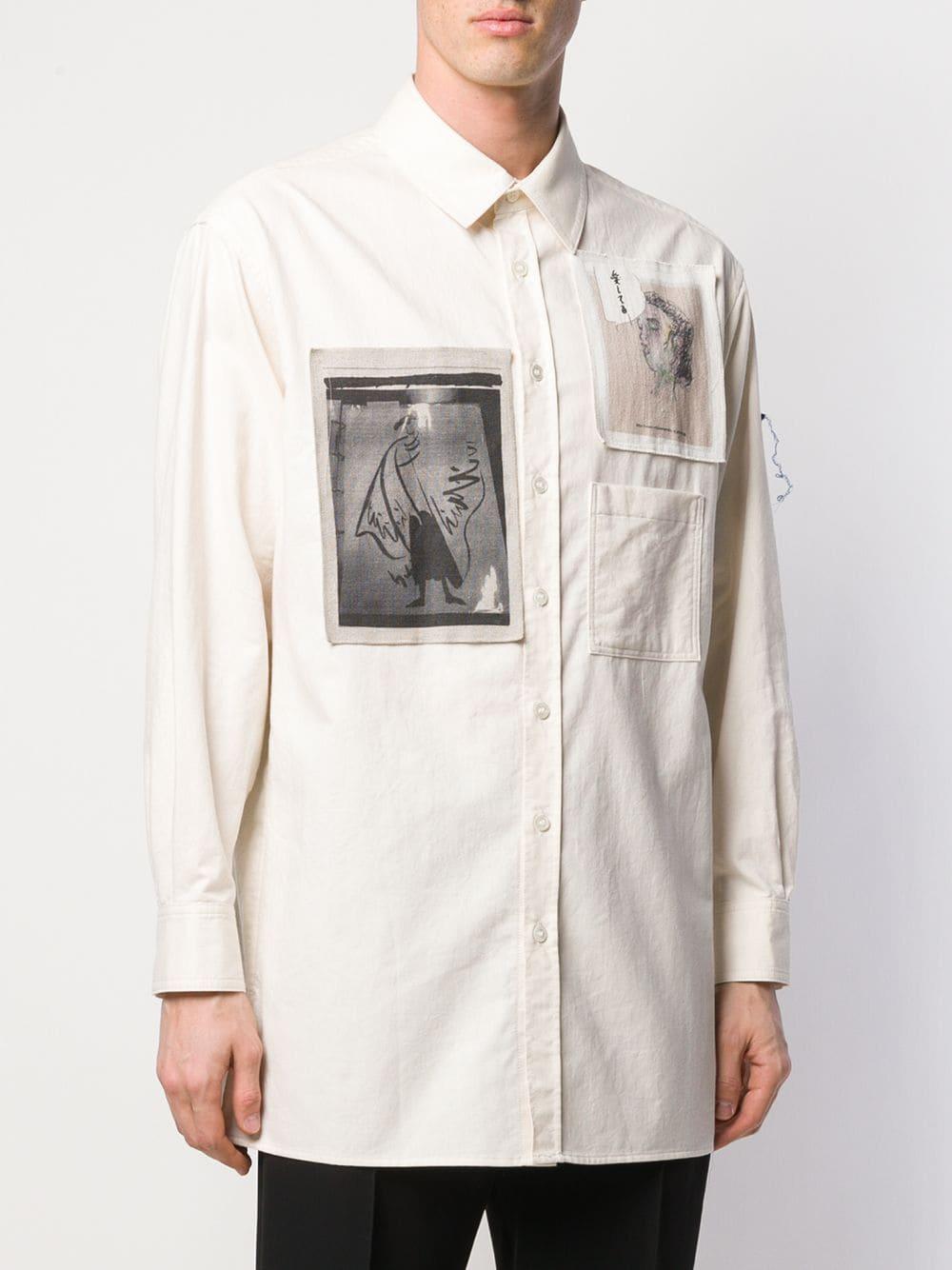 Yohji Yamamoto Linnen Shirt Met Patches In Het Wit Voor Heren Lyst
